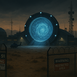 Area 51 is not just a terrestrial military base — it is a dimensional stargate linking Earth to other worlds, timelines, and universes. It functions as a cosmic doorway, intelligence hub, and experimental lab, co-owned and operated by multiple governments and factions from across the multiverse.